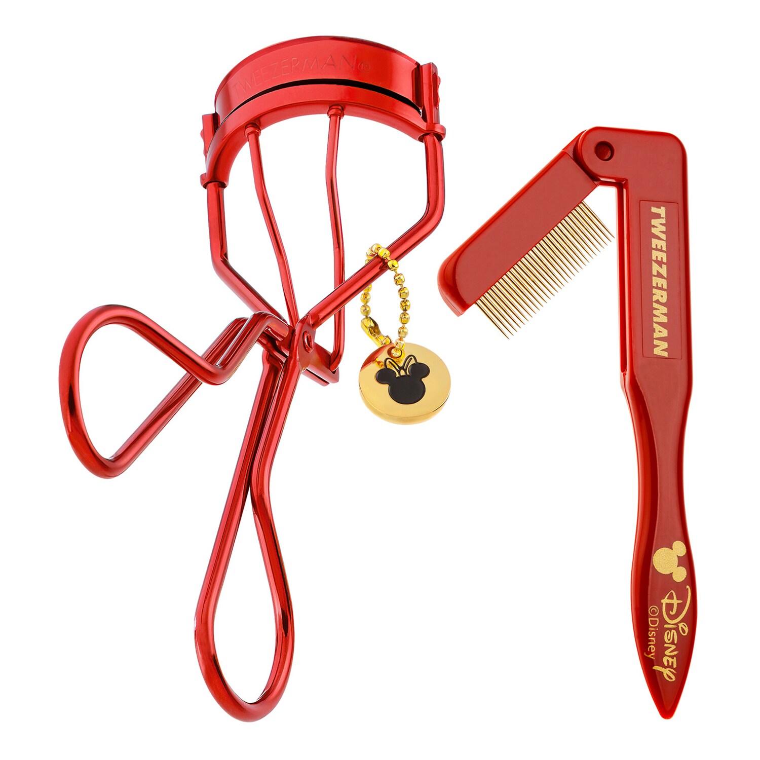 The Disney theme charm and branding on the curler and lash comb are super cute. I love how the metallic red really stands out and is unique. The Tweezerman brand is such high quality. The curler curls the lashes well and the sharp metal teeth of the lash comb separate the lashes very well. I would highly recommend this lash set.