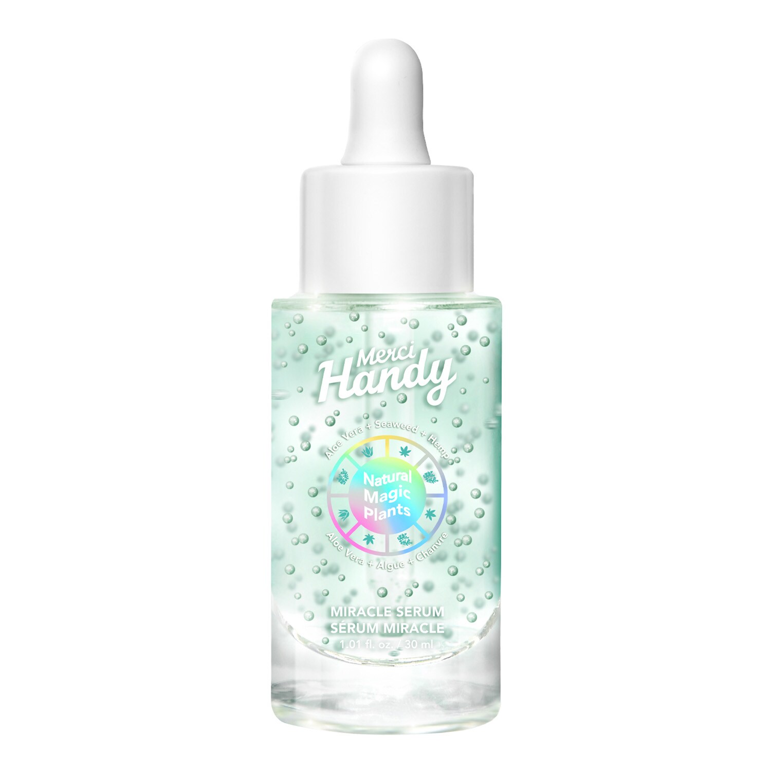 Vår shaman har valt ut tre heliga växter, aloe vera, hampa och tång, och förvandlade dem till ett mirakelserum. Dess koncentrerade magiska formel som innehåller suspenderade oljesfärer tränger snabbt in, jämnar ut hudtonen, minskar fläckar och ger din hud (och din själ) en strålande glöd varje dag.