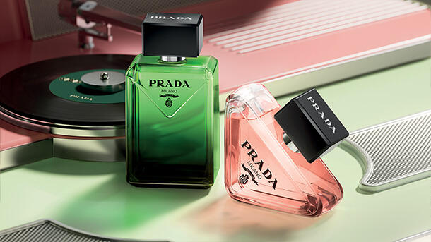 \\När vi utvecklade Paradigme-flakongen hämtade vi inspiration från Prada-doftarkiven, och sedan letade vi efter sätt att återskapa designen genom ett modernt perspektiv. Den gröna färgen känns oväntad; den sneda kanten på den inverterade triangeln framstår som en taktil och överraskande detalj. På detta sätt är den karakteristisk Prada, eftersom den är både onekligen sofistikerad, men med en touch av excentricitet.\\ Coralie Salem, kreativ direktör, Prada Beauty.